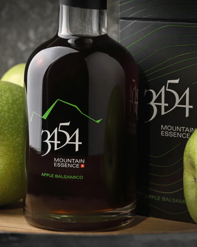 3454 Mountain Essence est une spécialité entièrement naturelle sans additifs. La particularité de nos créations uniques à bases de balsamique réside dans leur origine suisse, des fruits sélectionnés jusqu’au produit final raffiné. Plébiscitée par les chefs de renom, la collection 3454 Mountain Essence inspire d’extravagantes compositions gourmandes et invite l’exceptionnel dans nos assiettes au quotidien.